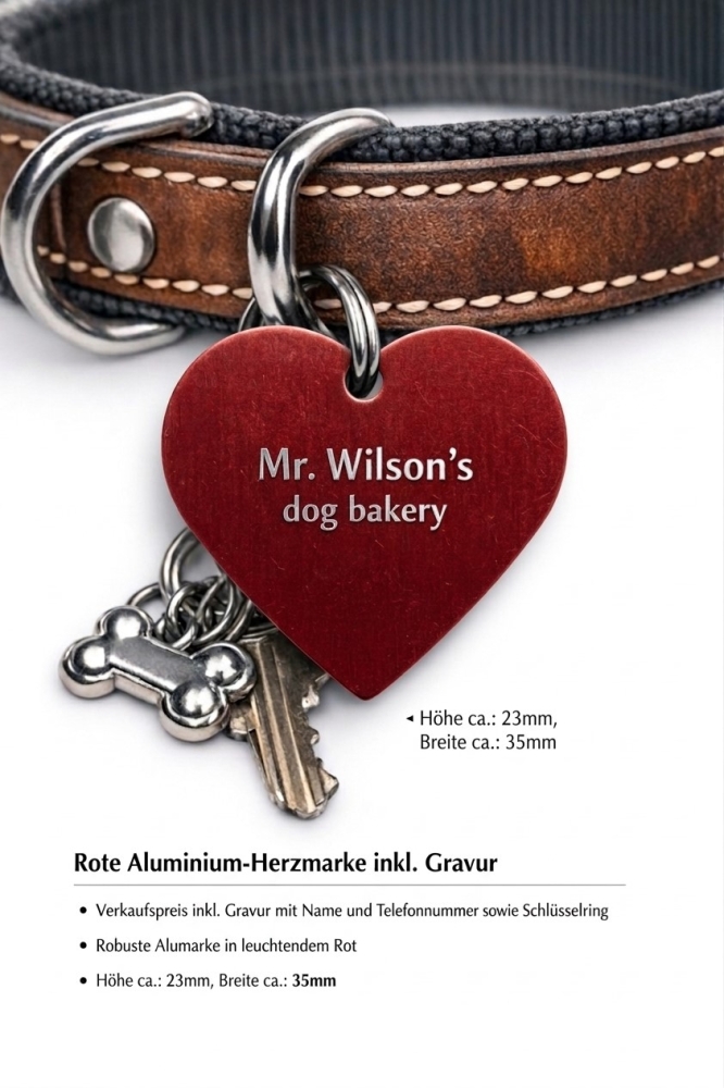 In leuchtendem Rot und mit individueller Gravur ist sie perfekt, um deinen Vierbeiner,